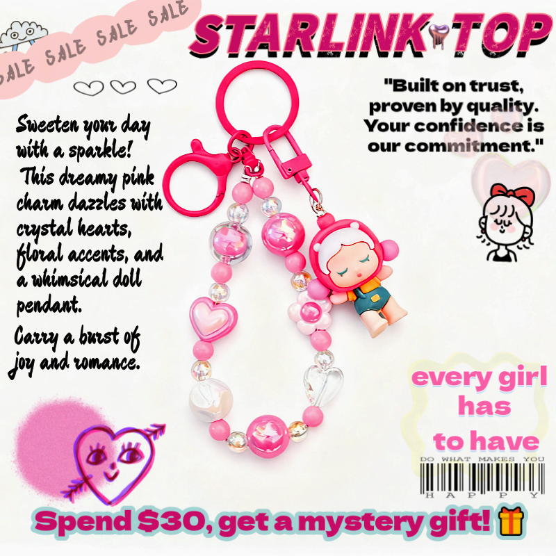 Embrace sweet vibes with our Blossom Pink Dream phone strap! 🌸✨ Sparkling pink beads, crystal hearts, and floral charms come together in a playful dance of light and love. Featuring an adorable bubble-style doll pendant, this piece adds a magical touch to your look.