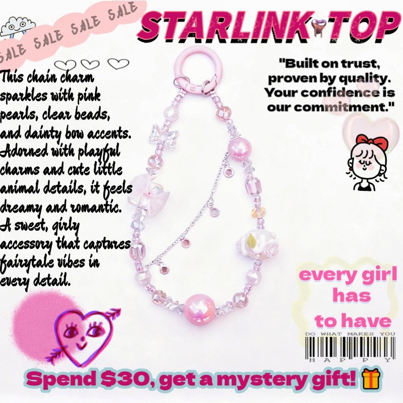 Indulge in a dreamy romance with Blossom Pink Romance! 🌸💖 This exquisite phone strap combines pearlescent pink beads, iridescent crystals, and delicate charms including a lace bow and white rose. The silver chain tassel with pink crystals adds a touch of playful elegance, catching the light with every move.