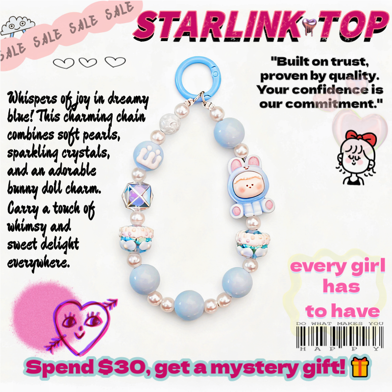 Float into a world of soft wonder with Blue Bunny Dream phone strap! 🌈 This delicate chain features matte blue beads, pearlescent accents, and playful cake charms, all shining with crystal sparkle. At its heart hangs an adorable blue bunny-style doll, adding a touch of magical whimsy to your everyday.