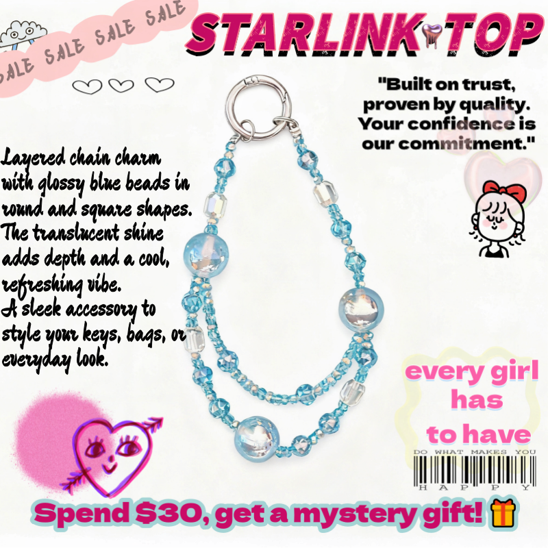 Capture the refreshing glow of the sea with Ocean Breeze Sparkle! 🌊✨ This elegant phone chain features luminous blue and crystal-clear beads in various shapes, layered for a modern textured look. The dual-strand design adds depth while pearlescent blue accents offer a soft touch of charm.