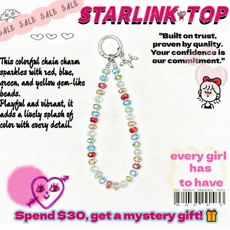 Add a burst of joy to your day with Rainbow Pup Glow! 🌈🐶 This vibrant phone strap features multicolored gem-like beads in ruby red, sapphire blue, emerald green, and sunny yellow—each catching the light with brilliant energy. The playful silver balloon dog charm adds a touch of whimsy and modern charm.