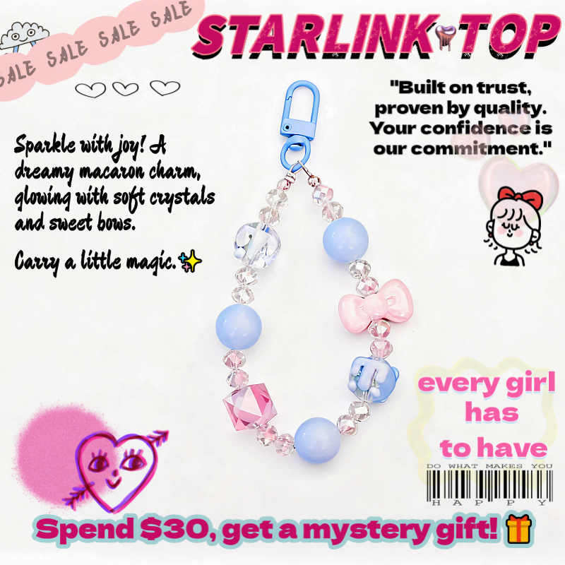 Add a sprinkle of joy to your everyday with our Sweet Macaron Dream phone strap! 🌸 Featuring soft matte blue beads, sparkling clear crystals, and adorable pink bows, this design blends playful charm with delicate shimmer. The cute creamy "M" charm adds a sweet surprise!
